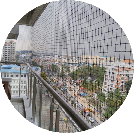Our services include Balcony Safety Net, Children Safety Net, Construction Safety Net, Duct Area Safety Net, Industrial Safety Net, Swimming Pool Safety Net, Staircase Safety Net, Monkey Safety Net, Glass Safety Net, Coconut Safety Net, Mosquito Net, Cricket Practice Net, All Sports Practice Nets, Bird Spikes, Anti Bird, Pigeon Nets for Balconies, Bird Protection Nets, Agro Shade Nets, Plant Support Netting, Garden Netting, Shade Nets, Car Parking Safety Net etc...